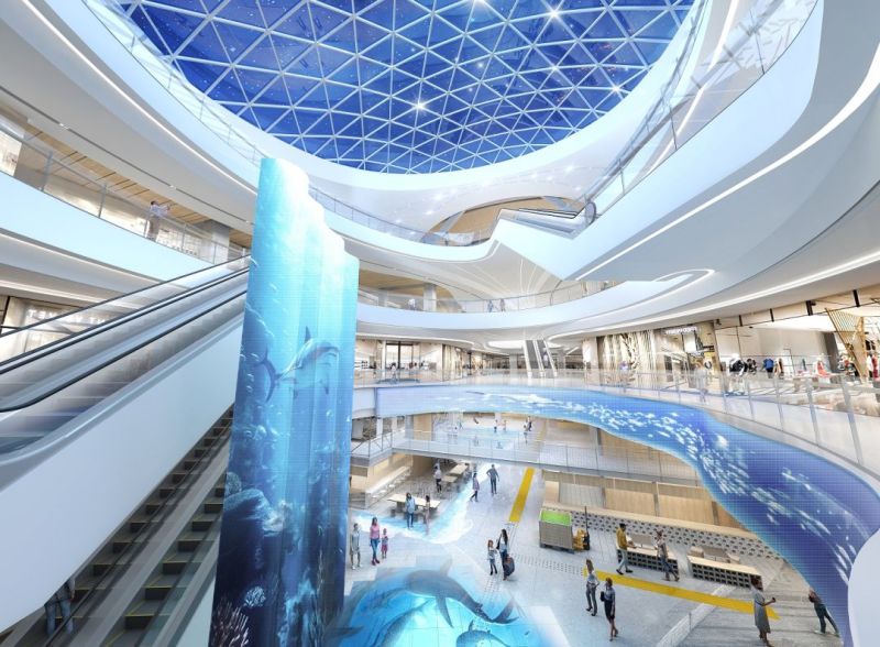 鯤鵬水擊,浩浩湯湯。威海灣城市綜合體以“鯨魚出海”為靈感,其中“鯨脊”部分為大跨度拱結(jié)構(gòu)配合預(yù)應(yīng)力空心樓板構(gòu)成,為全國首創(chuàng),其背后蘊含的包容、博愛、拼搏等海洋文化,也為該項目增添了學(xué)養(yǎng)深厚的極致韻味。定位城市功能新提升、城市形象重塑造的威海灣城市綜合體,致力于創(chuàng)造一個多元化的現(xiàn)代城市商業(yè)空間。