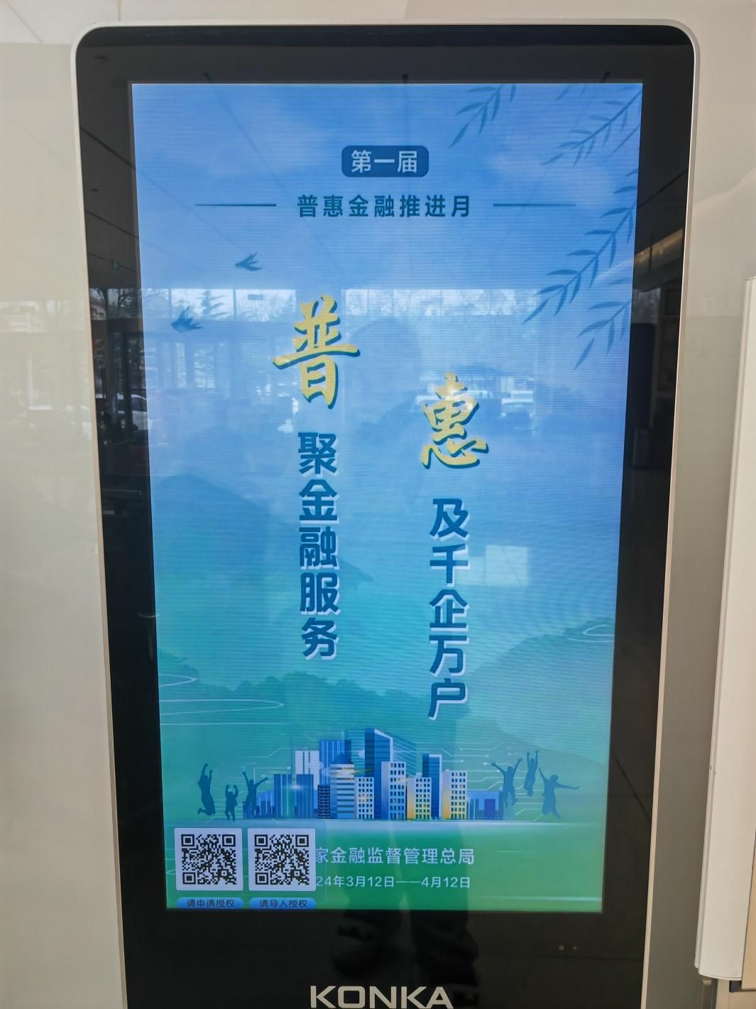 圍繞“普聚金融服務(wù),惠及千企萬(wàn)戶(hù)”活動(dòng)主題,在轄內(nèi)多個(gè)網(wǎng)點(diǎn)電子屏統(tǒng)一布放國(guó)家金融監(jiān)管總局下發(fā)的宣傳海報(bào),LED屏滾動(dòng)播放“普惠金融推進(jìn)月”、“普聚金融服務(wù),惠及千企萬(wàn)戶(hù)”等宣傳信息,通過(guò)多種形式的宣傳活動(dòng),積極對(duì)接市場(chǎng)主體和人民群眾金融需求,宣傳介紹普惠金融政策和產(chǎn)品,以高質(zhì)量的金融服務(wù),為服務(wù)實(shí)體經(jīng)濟(jì)發(fā)展貢獻(xiàn)招行力量!