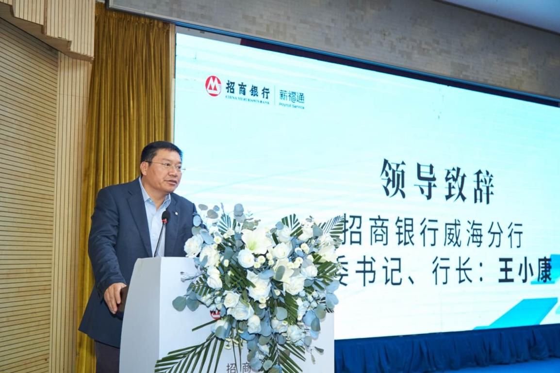 招商銀行威海分行黨委書記、行長王小康作推介會致辭,代表招商銀行威海分行對到場的企業(yè)嘉賓表示熱烈歡迎。致辭中,他向與會嘉賓介紹招商銀行在威海服務(wù)的15年來,始終堅持創(chuàng)新驅(qū)動的專業(yè)化發(fā)展道路,用自身的科技積累回饋客戶、與客戶共成長。截至目前,服務(wù)的企業(yè)客戶近0.7萬戶,零售客戶超58萬人,其中企業(yè)工資代發(fā)客戶達(dá)到了13萬人。未來,招商銀行將持續(xù)夯實數(shù)字化產(chǎn)品,讓更多的企業(yè)與招行攜手前行、共同成長。