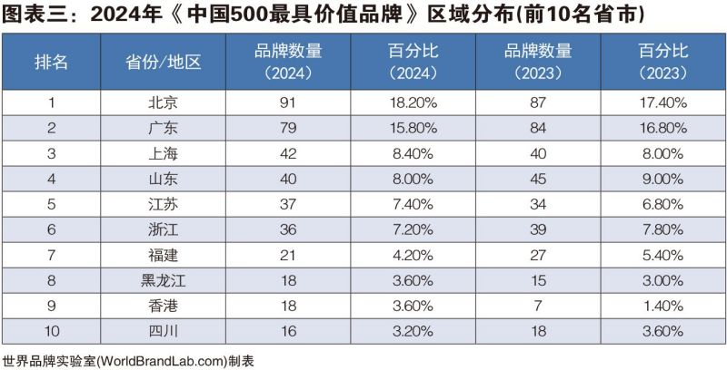 據(jù)世界品牌實(shí)驗(yàn)室的專家組分析,一個區(qū)域的競爭實(shí)力,主要取決于其比較優(yōu)勢,而品牌效益直接影響著地區(qū)比較優(yōu)勢的形成和發(fā)展。品牌是一個地區(qū)發(fā)展的重要標(biāo)志,品牌與區(qū)域經(jīng)濟(jì)的增長是相互聯(lián)動的。從本屆《中國500最具價值品牌》區(qū)域分布來看,北京有91個品牌入選,名列第一,因?yàn)橼A利能力強(qiáng)的央企總部集中在北京;廣東和上海分別有79個和42個品牌入選,位居第二和第三。根據(jù)入選品牌影響力范圍大小,可按照全國性、世界性品牌進(jìn)行劃分。榜單中具有全國范圍影響力的品牌有431個,占86.20%;具有世界性影響力的品牌數(shù)為69個,占13.80%。